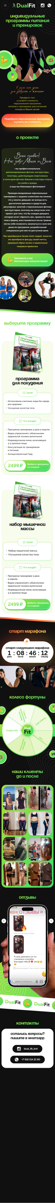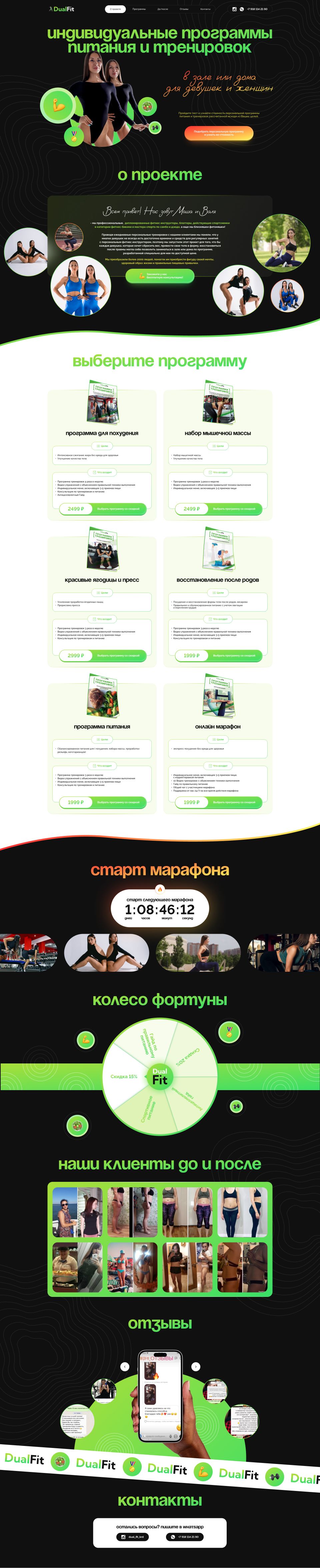 Цель: Наше диджитал агентство сотрудничало с DualFit, компанией, предоставляющей индивидуальные программы питания и тренировок, для создания современного и удобного веб-сайта. Наша цель заключалась в том, чтобы разработать онлайн-платформу, которая бы помогала клиентам легко находить информацию о программах, записываться на консультации и отслеживать свой прогресс.
