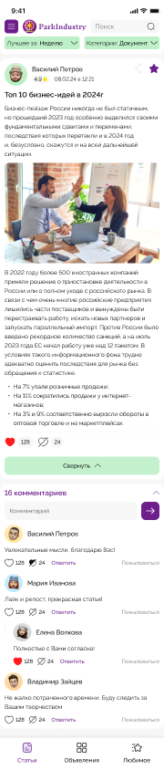 Цель: Наше диджитал агентство сотрудничало с ParkIndustry, сервисом объявлений и статей, для создания современного и удобного веб-сайта. Наша цель заключалась в разработке онлайн-платформы, которая бы помогала пользователям легко находить и публиковать объявления, а также читать интересные и полезные статьи.