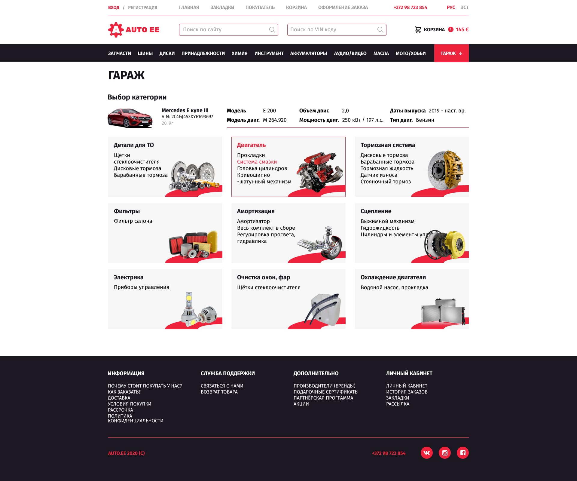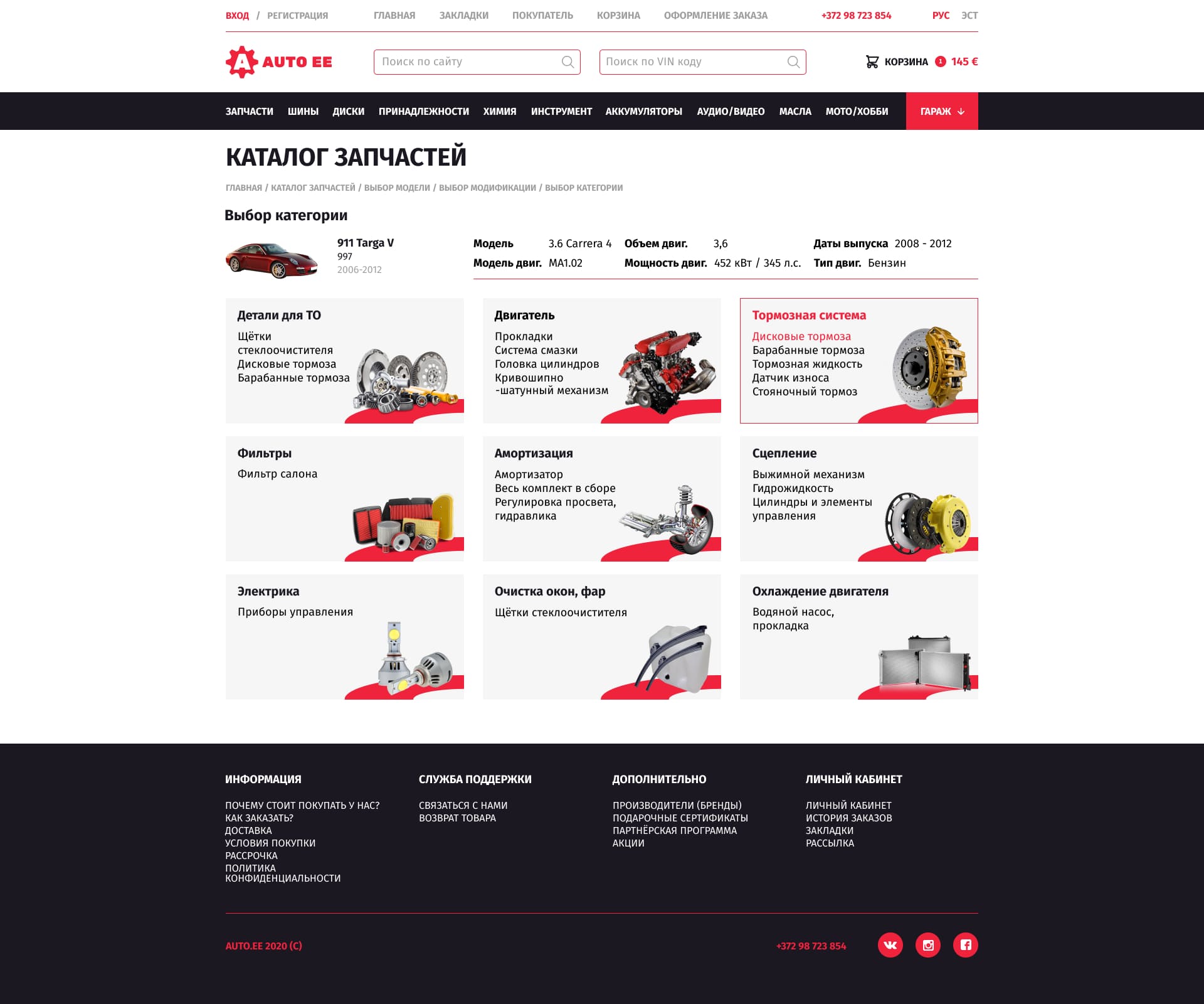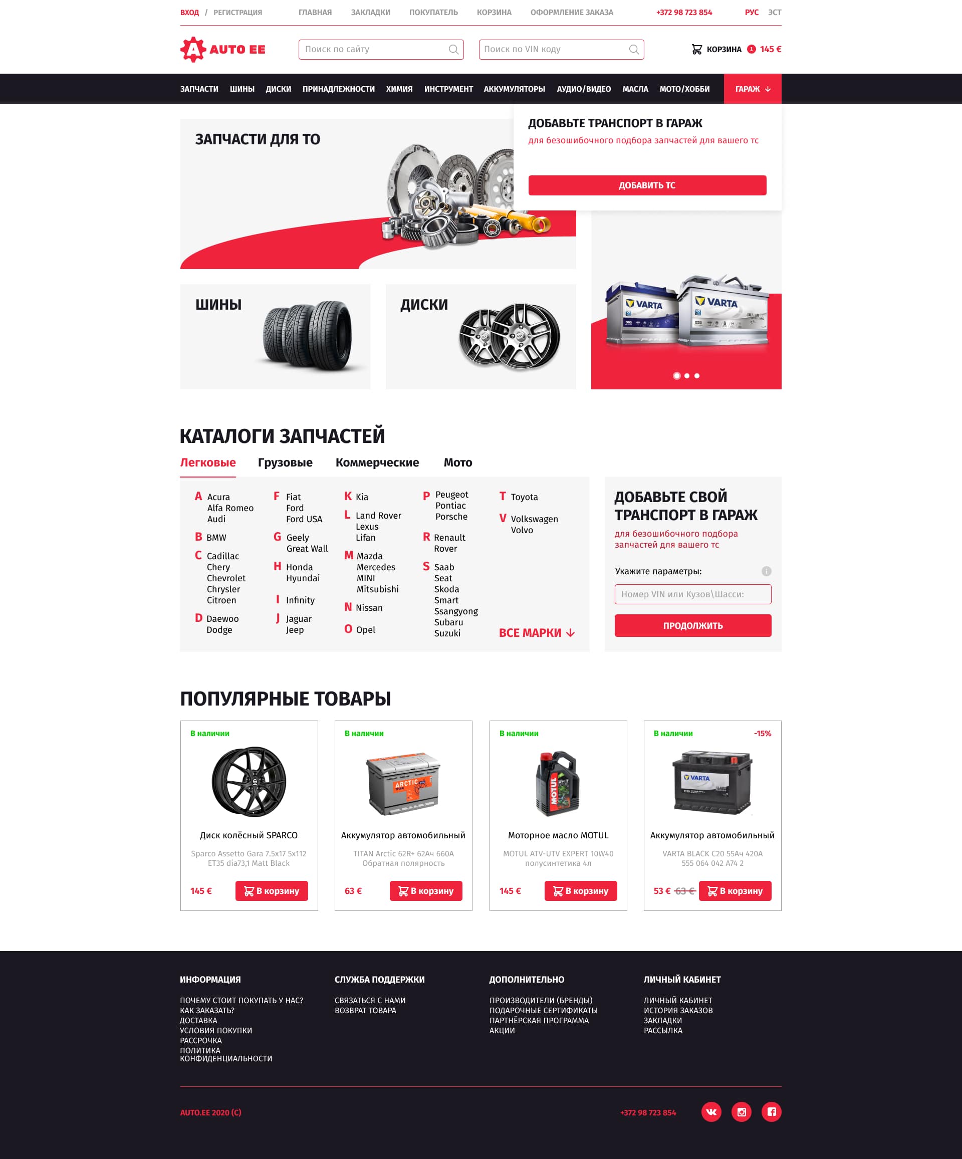 Цель: Разработать современный и функциональный дизайн для интернет-магазина AUTO EE, специализирующегося на продаже автозапчастей. Основной задачей было создание визуально привлекательного и интуитивно понятного интерфейса, который поможет клиентам легко находить нужные запчасти и оформлять заказы.