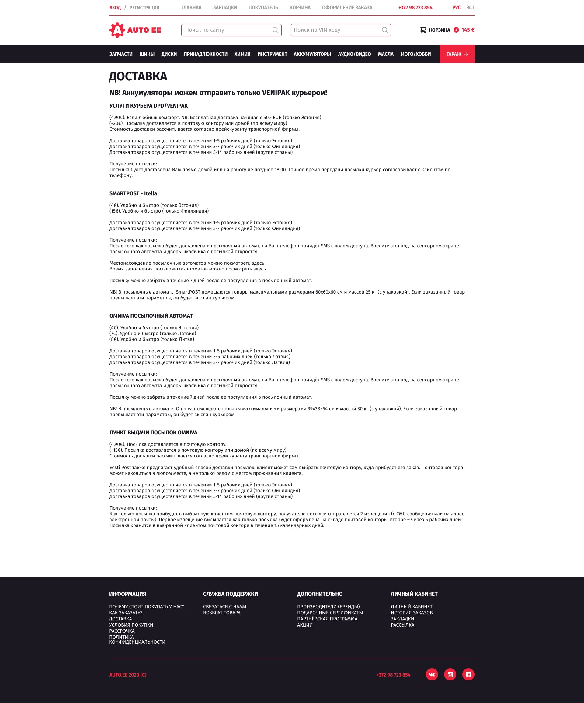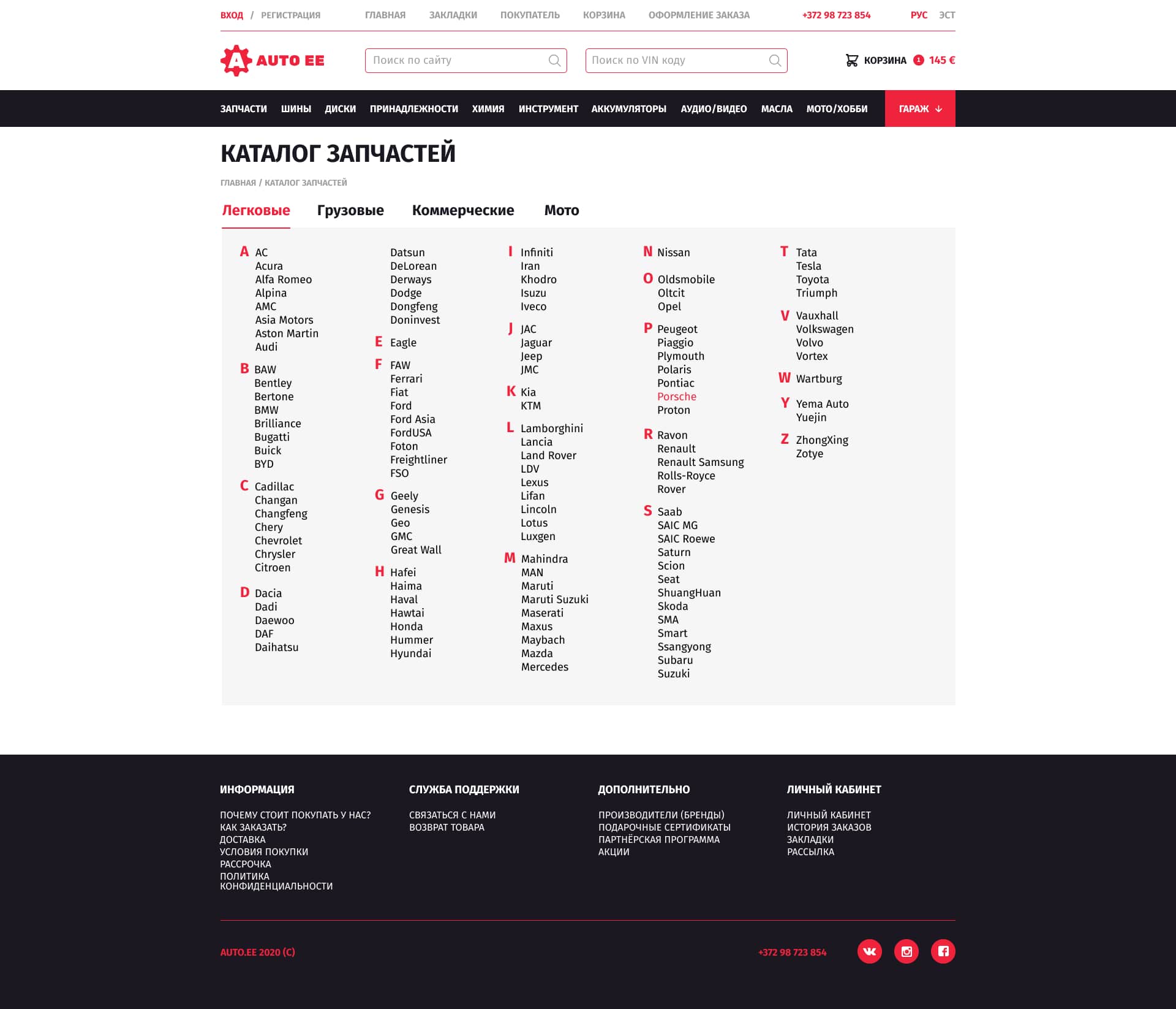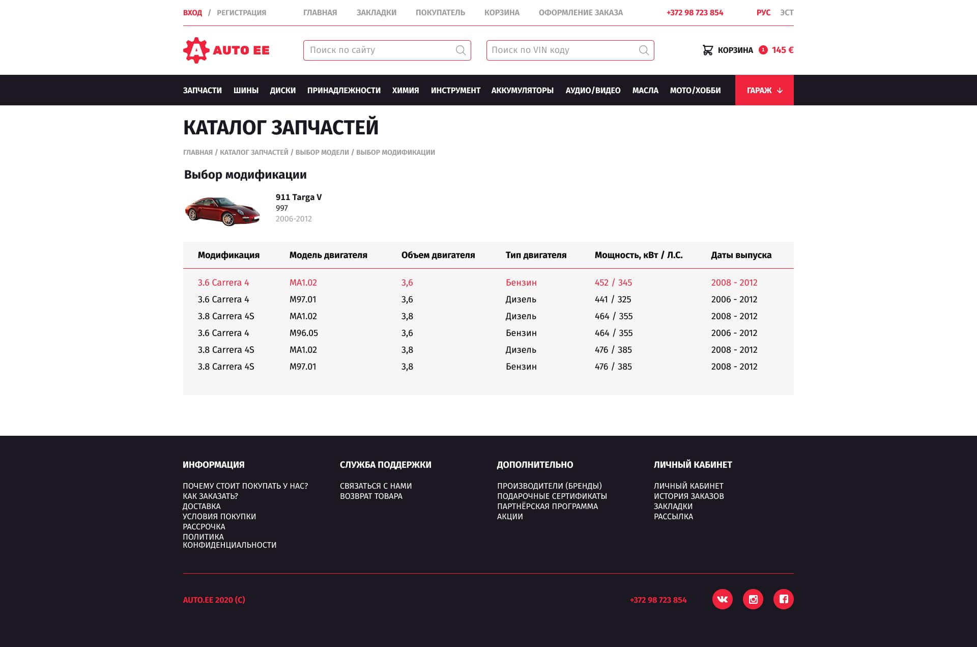 Цель: Разработать современный и функциональный дизайн для интернет-магазина AUTO EE, специализирующегося на продаже автозапчастей. Основной задачей было создание визуально привлекательного и интуитивно понятного интерфейса, который поможет клиентам легко находить нужные запчасти и оформлять заказы.