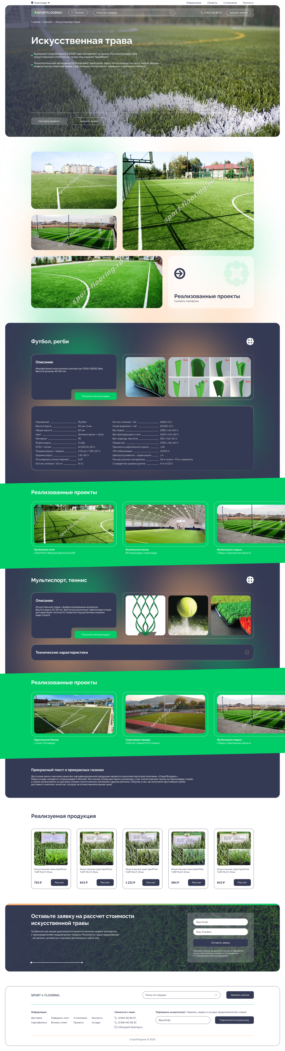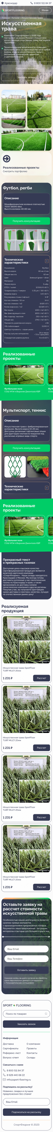 Цель: Наше диджитал агентство сотрудничало с компанией SPORTFLOORING, специализирующейся на коммерческих и спортивных напольных покрытиях, для создания современного и удобного веб-сайта. Наша цель заключалась в том, чтобы разработать онлайн-платформу, которая бы помогала клиентам легко находить информацию о предоставляемых продуктах и услугах, а также отражала высокий уровень профессионализма и качества компании.