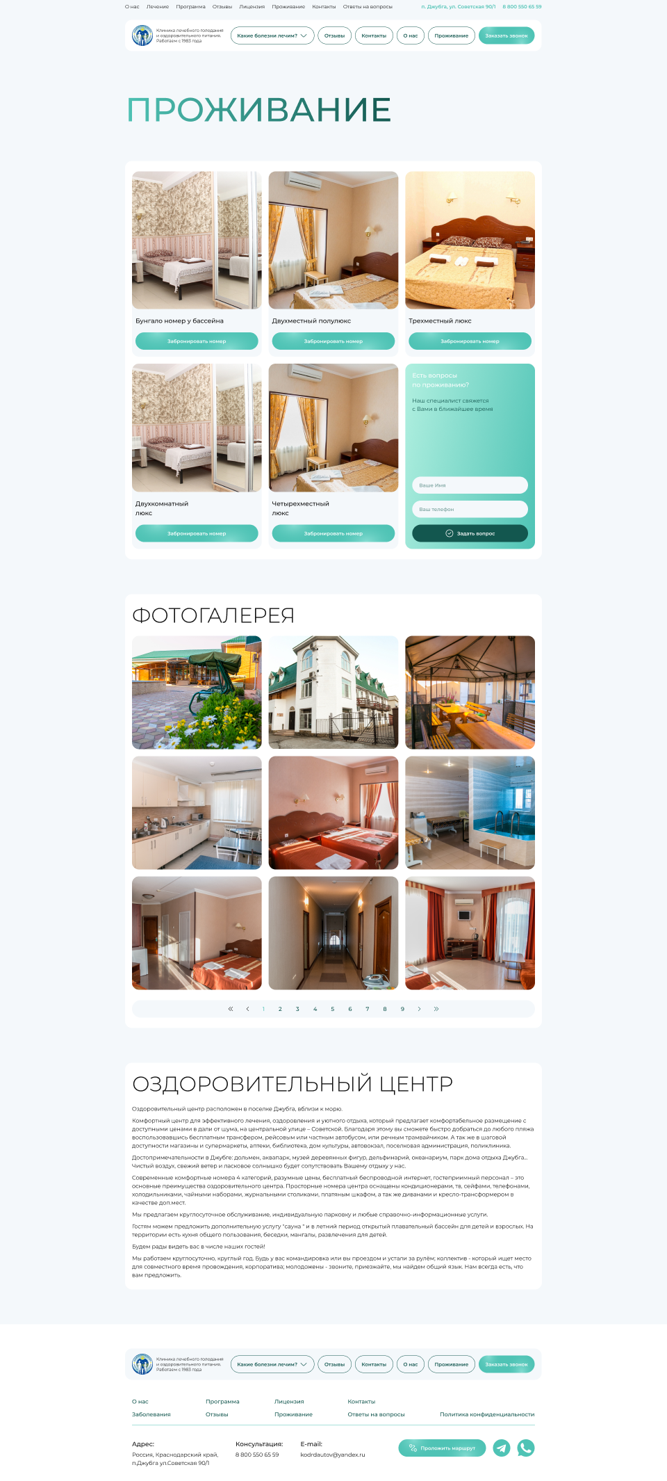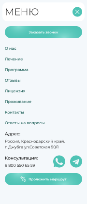 Решение: Мы разработали интуитивно понятный и визуально привлекательный веб-сайт, который позволяет пользователям быстро и легко находить информацию о лечебных программах, расписании, условиях проживания и уникальных преимуществах клиники. Особое внимание было уделено удобству навигации и адаптивному дизайну, чтобы сайт отлично функционировал на любых устройствах, включая мобильные телефоны и планшеты.
