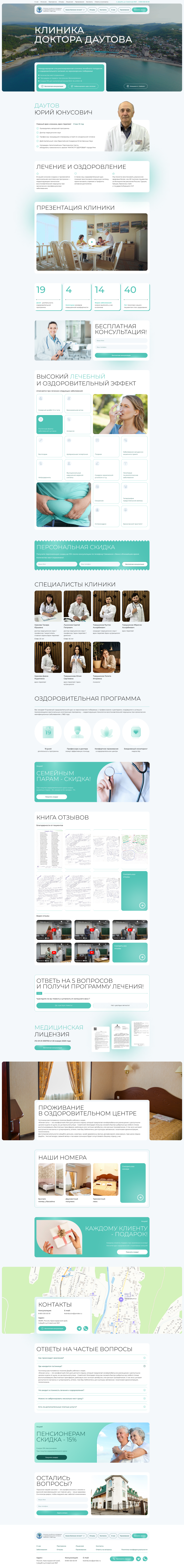 Цель: Наше диджитал агентство сотрудничало с клиникой доктора Даутова для создания современного и удобного веб-сайта, который помогает потенциальным клиентам легко находить информацию о лечебных программах и условиях пребывания. Наша цель заключалась в том, чтобы создать онлайн-платформу, которая бы отражала высокий уровень профессионализма и качества услуг, предоставляемых клиникой.