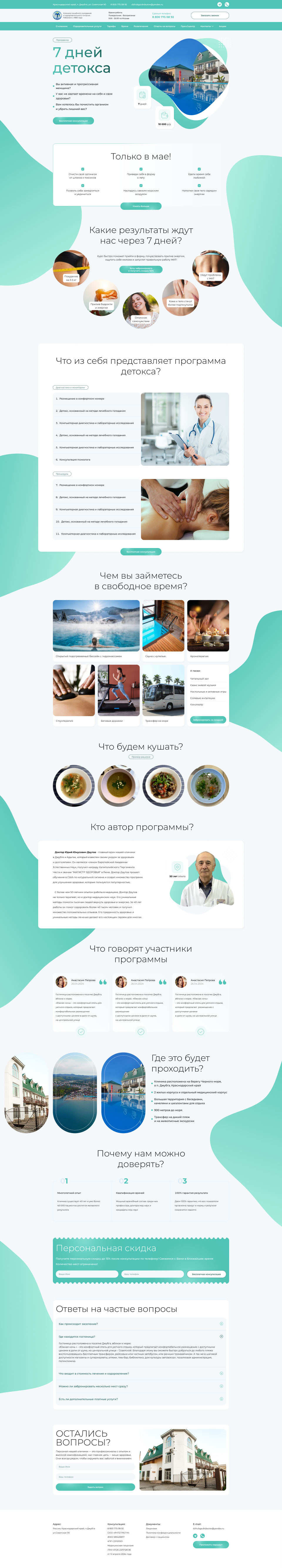 Цель: Наше диджитал агентство сотрудничало с программой «7 Дней Детокса» для создания современного и удобного веб-сайта. Наша цель заключалась в том, чтобы разработать онлайн-платформу, которая бы помогала пользователям легко находить информацию о программе, ее преимуществах и процессе детокса, а также записываться на участие.