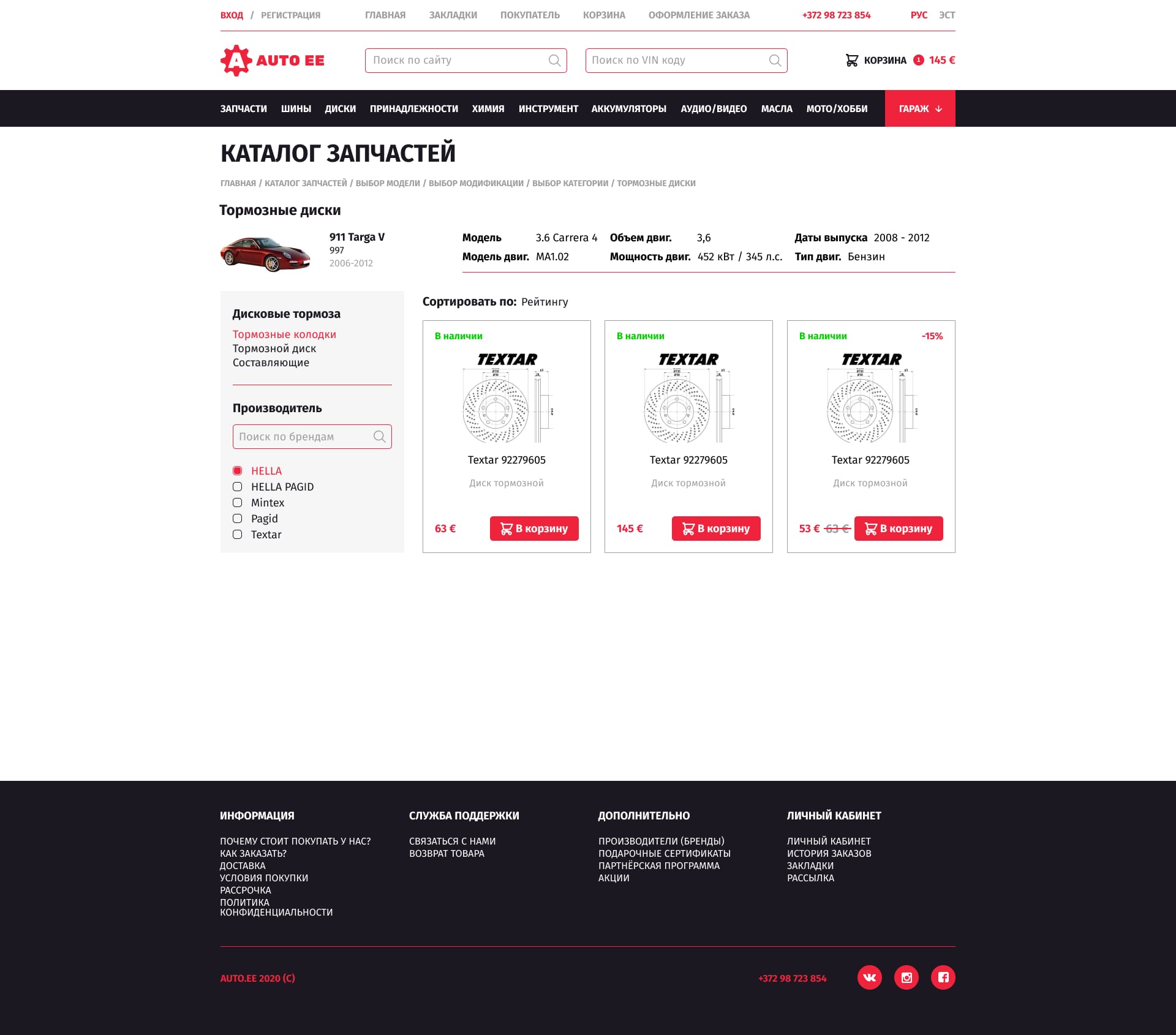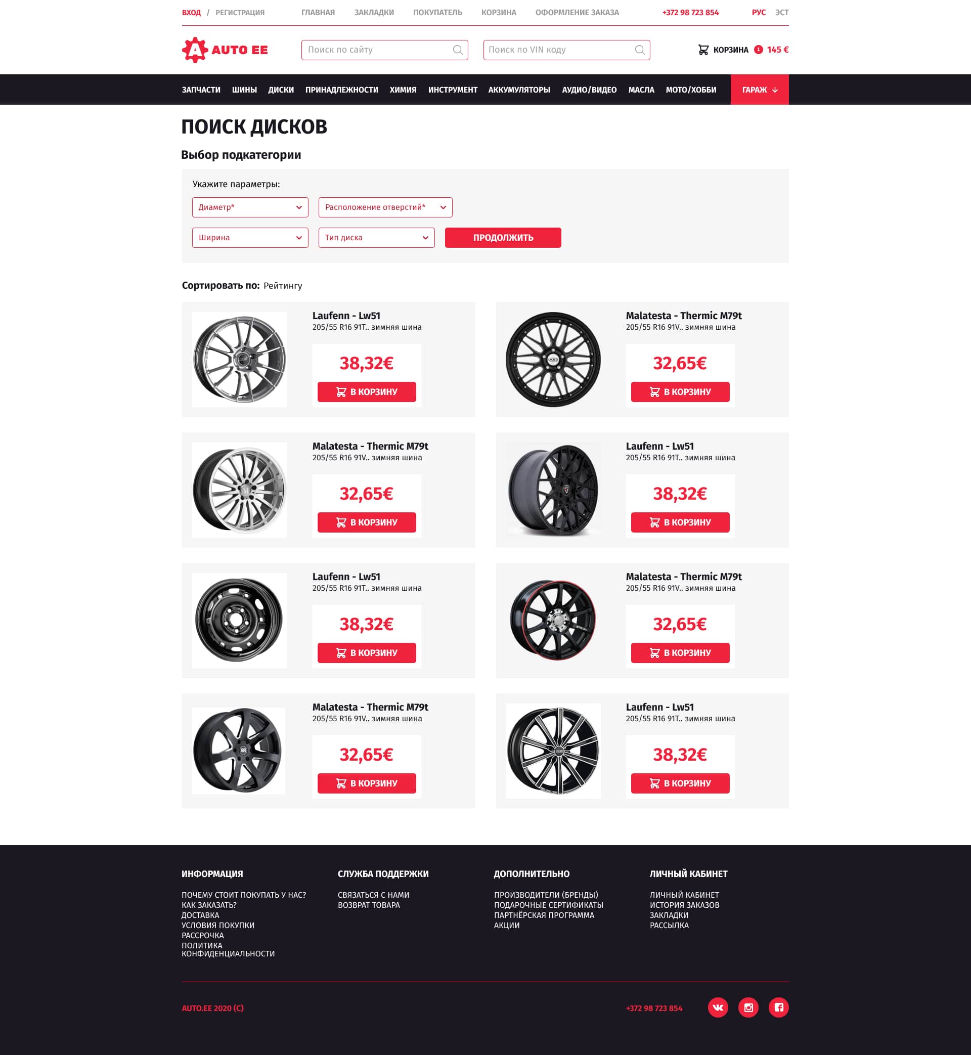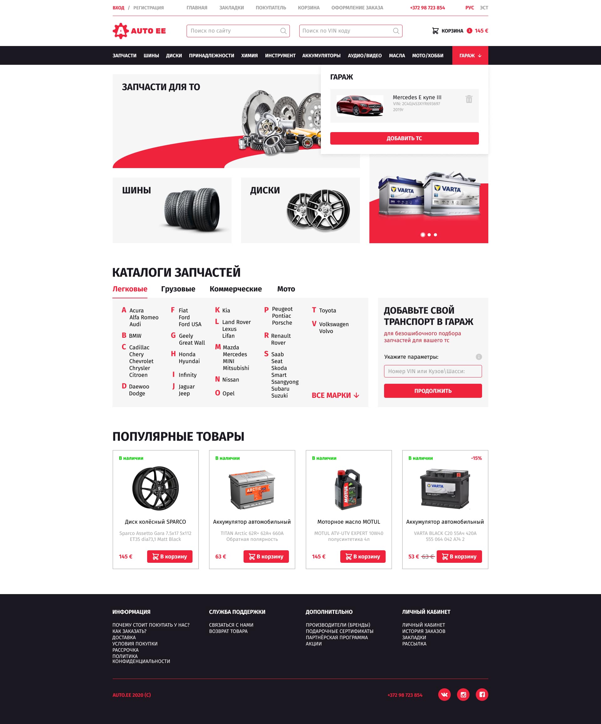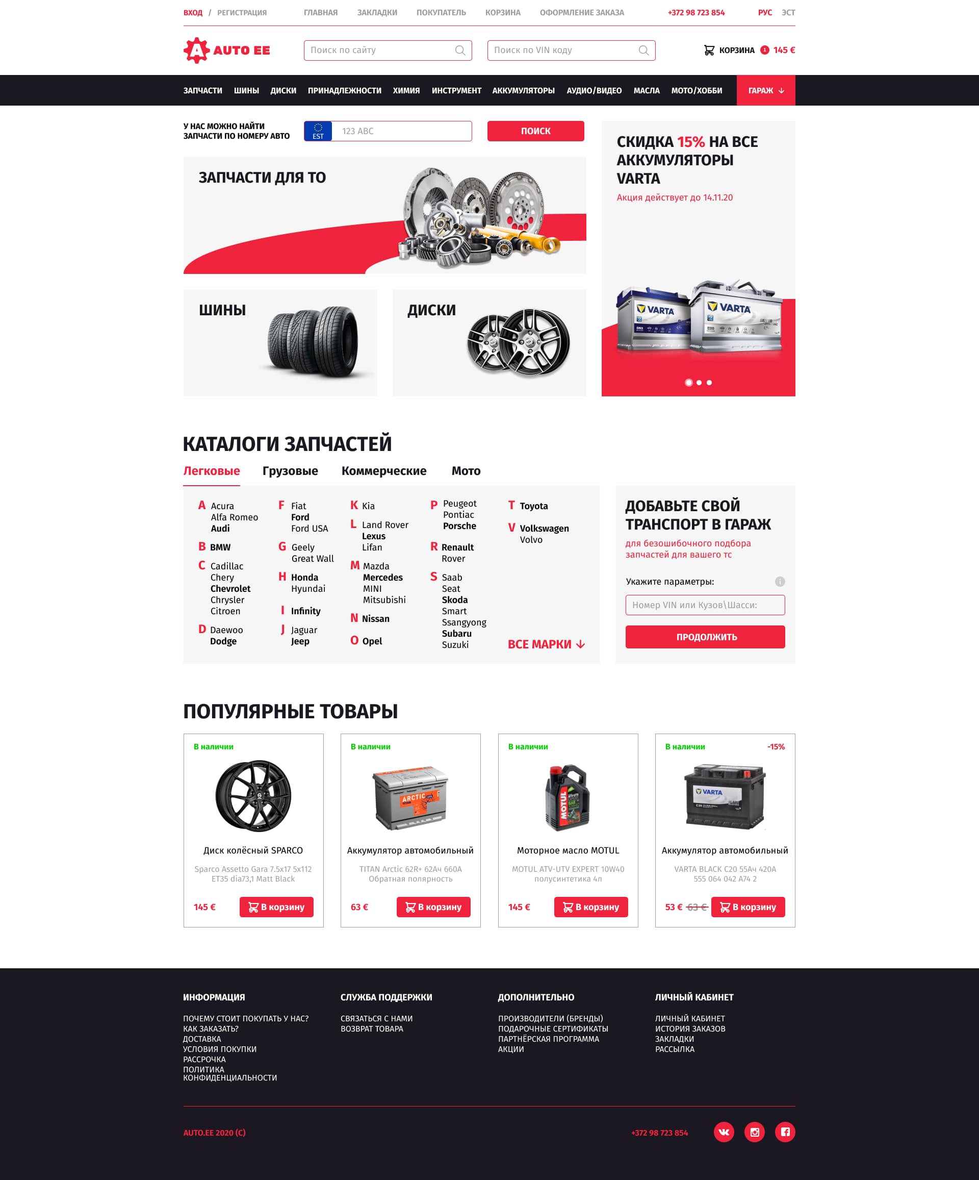 Цель: Разработать современный и функциональный дизайн для интернет-магазина AUTO EE, специализирующегося на продаже автозапчастей. Основной задачей было создание визуально привлекательного и интуитивно понятного интерфейса, который поможет клиентам легко находить нужные запчасти и оформлять заказы.