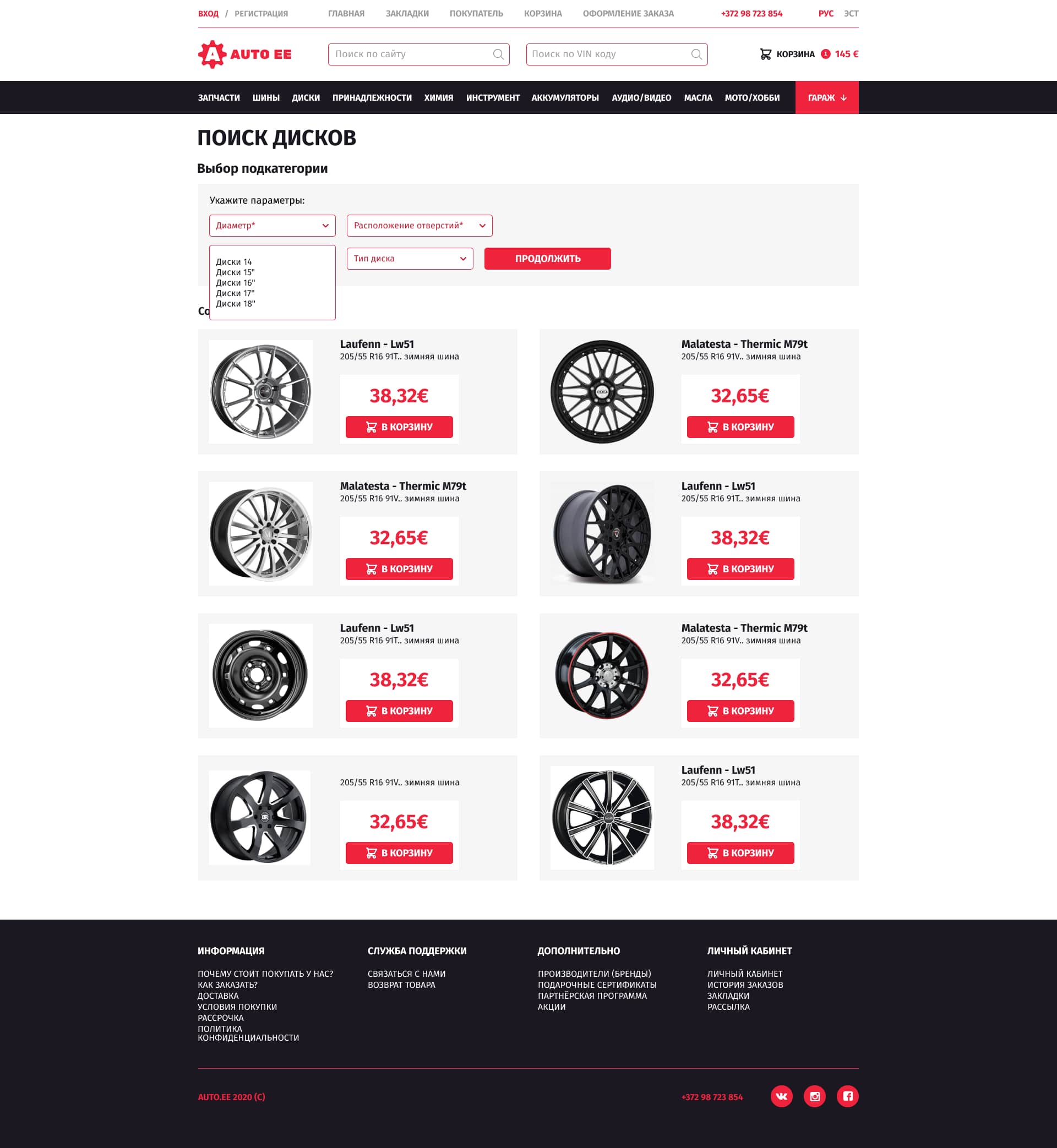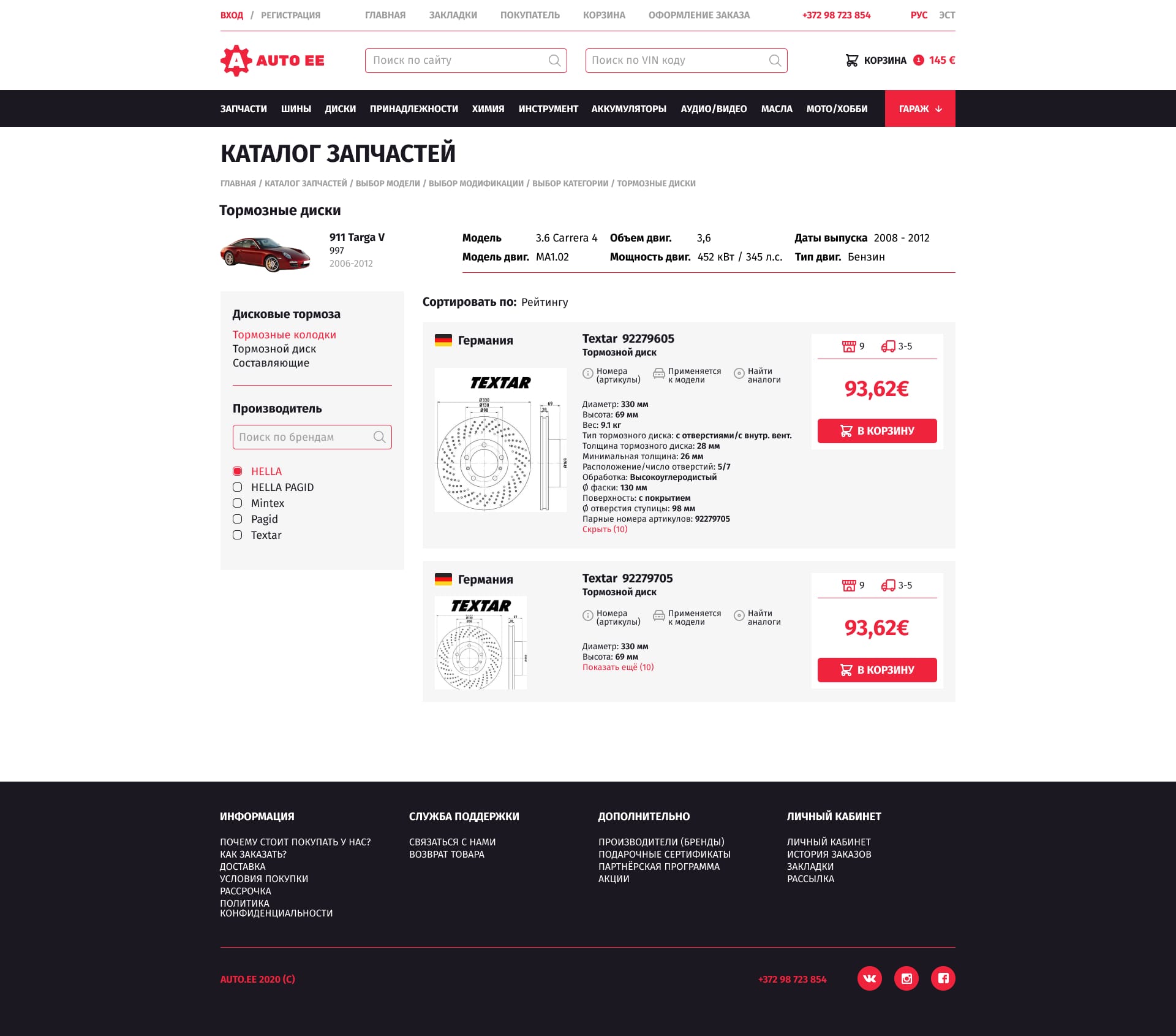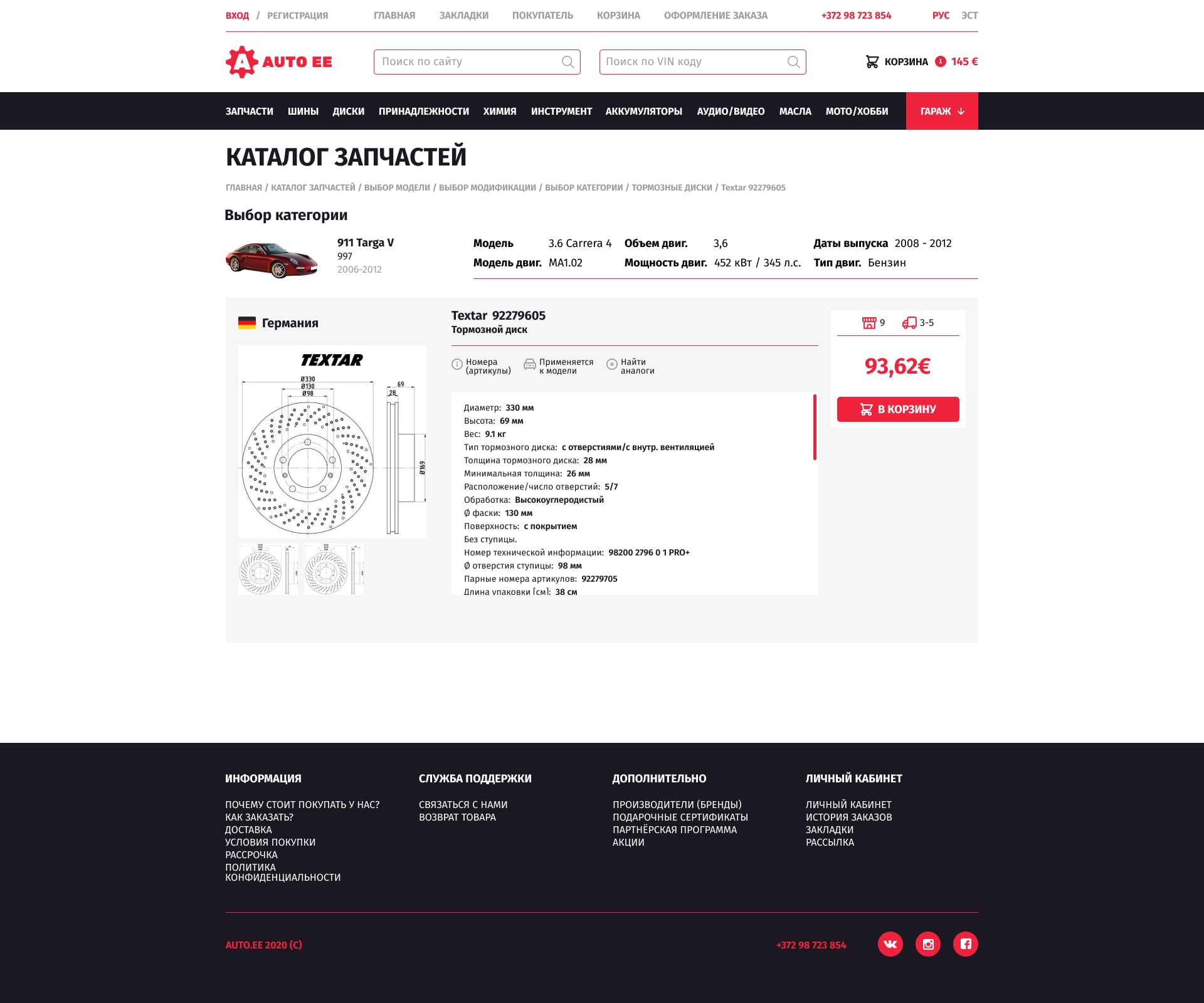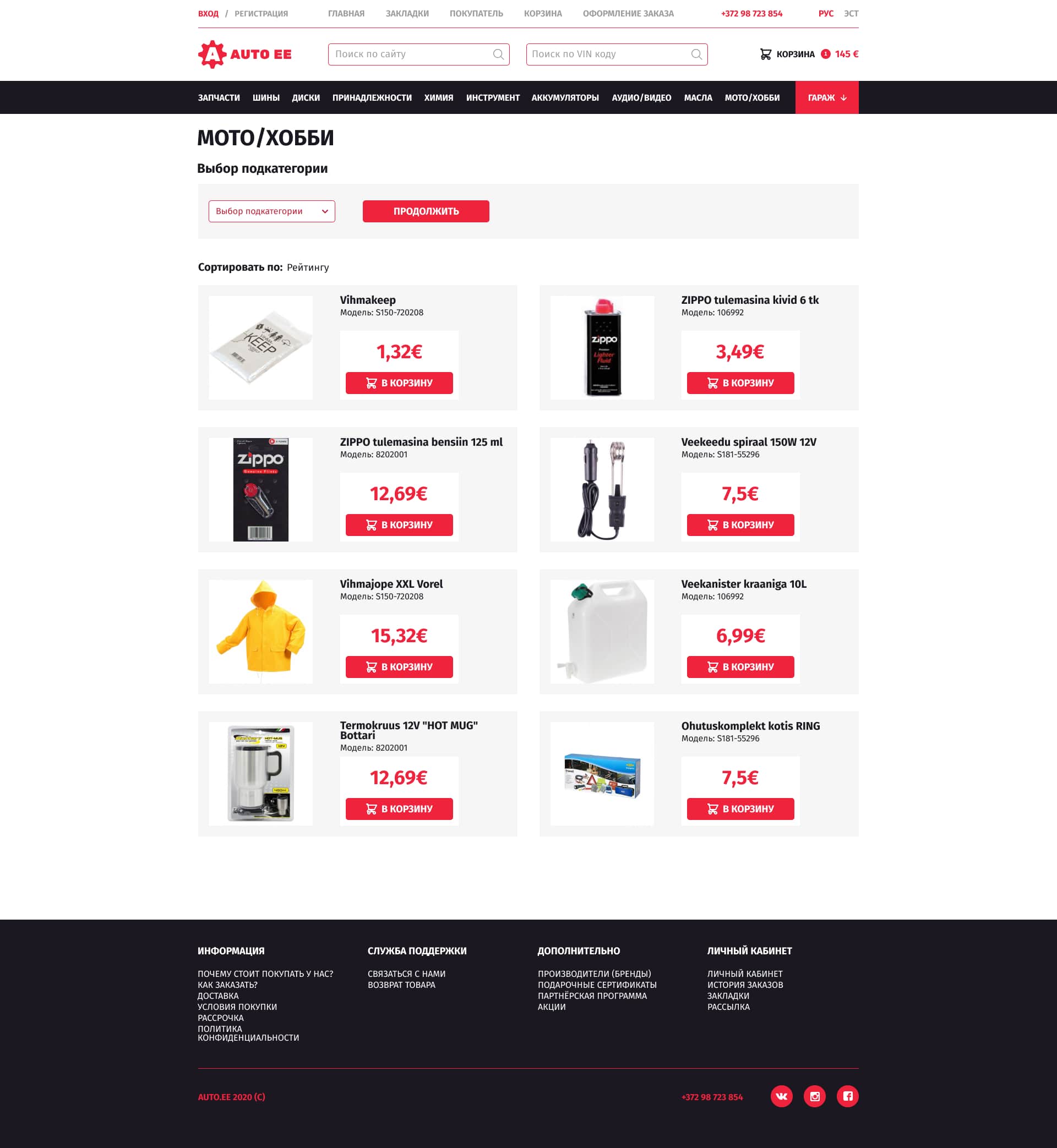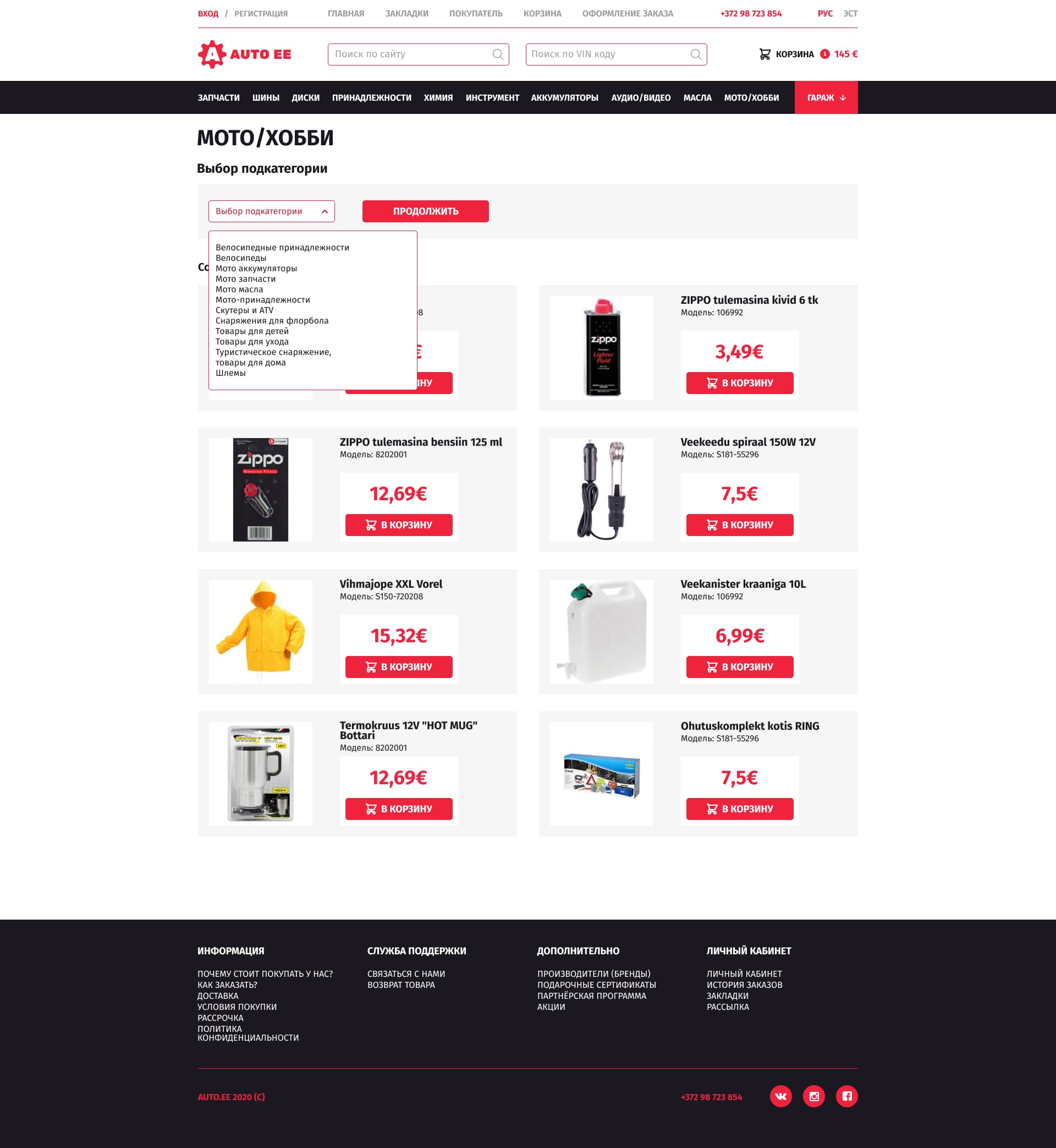Цель: Разработать современный и функциональный дизайн для интернет-магазина AUTO EE, специализирующегося на продаже автозапчастей. Основной задачей было создание визуально привлекательного и интуитивно понятного интерфейса, который поможет клиентам легко находить нужные запчасти и оформлять заказы.