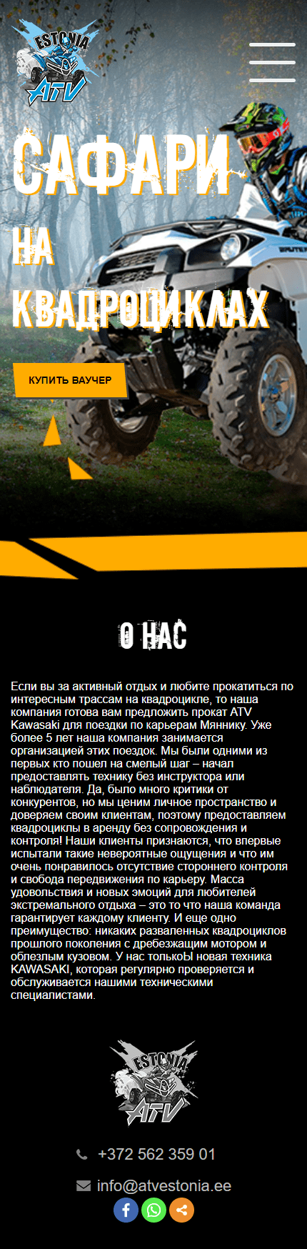 Результаты: В результате нашей работы компания, предоставляющая услуги сафари на квадроциклах, получила современный и функциональный веб-сайт, который стал важным инструментом для привлечения новых клиентов и поддержания связи с текущими. Веб-сайт получил положительные отзывы за свой захватывающий дизайн и удобство использования, что способствовало росту интереса и лояльности среди клиентов.