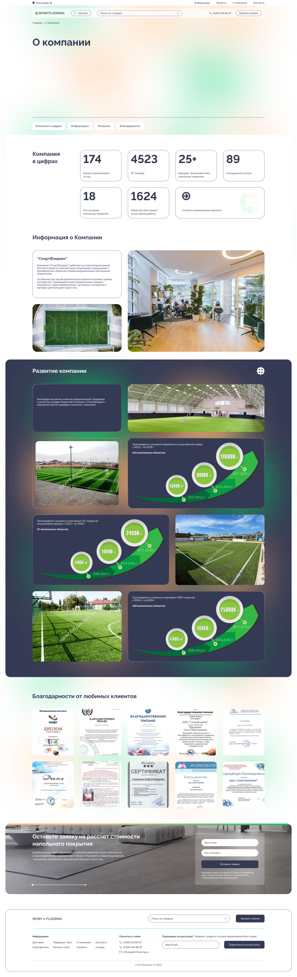 Результаты: В результате нашей работы компания SPORTFLOORING получила современный и функциональный веб-сайт, который стал важным инструментом для привлечения новых клиентов и поддержания связи с текущими. Веб-сайт получил положительные отзывы за свой дизайн и удобство использования, что способствовало росту доверия и лояльности среди клиентов.