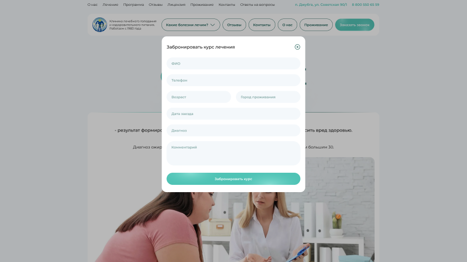 На сайте интегрирована онлайн-система записи на программы, что значительно упростило процесс бронирования. Наше решение включает разделы для отзывов пациентов, фотогалерею и блоги о пользе лечебного голодания и оздоровительного питания, что помогает клиентам принимать информированные решения.