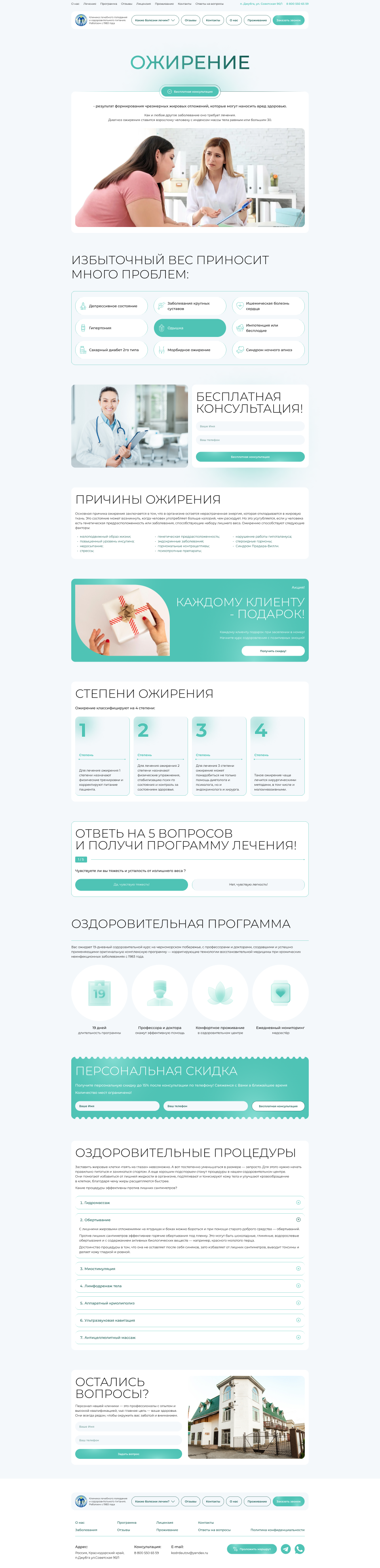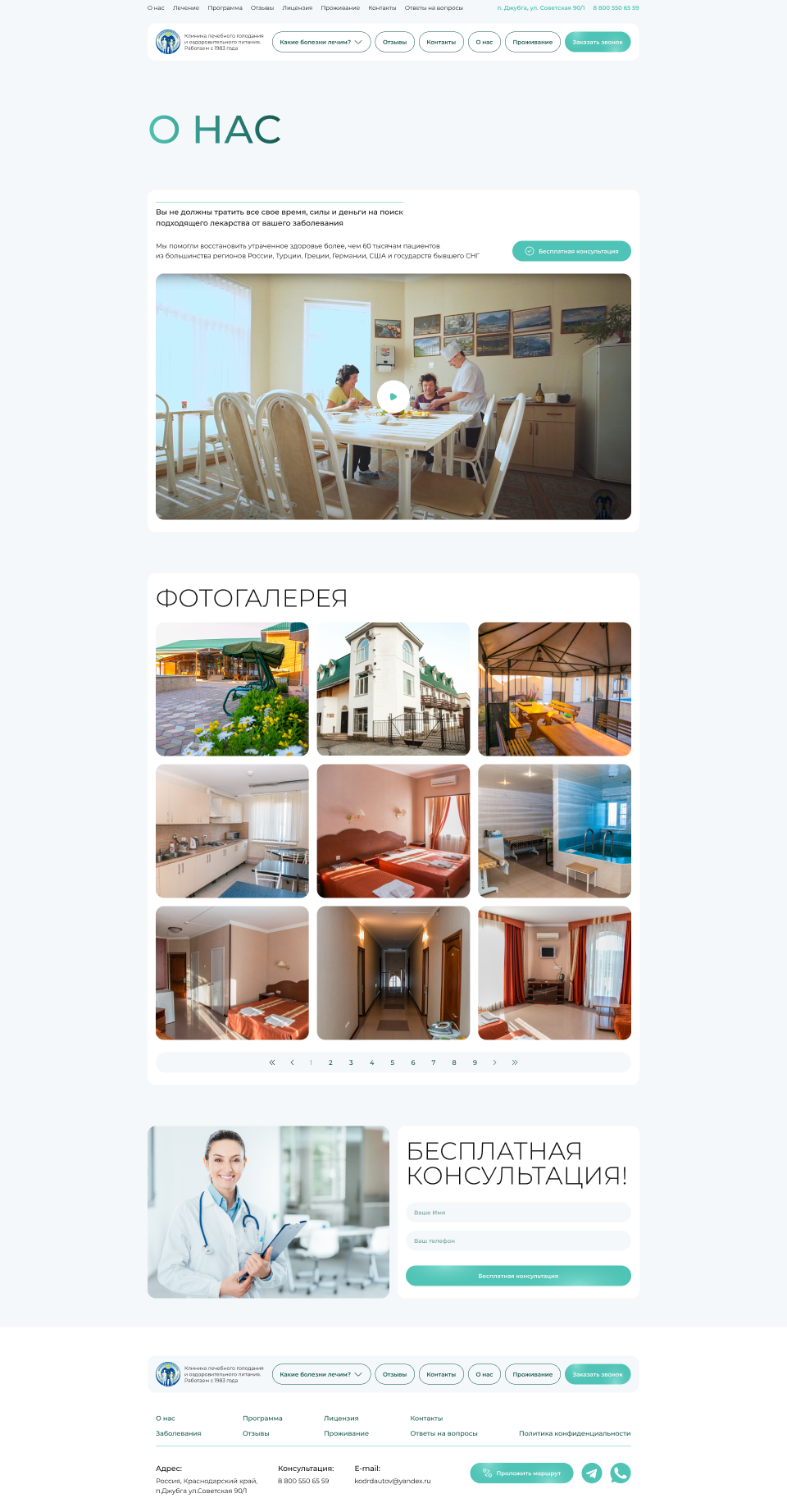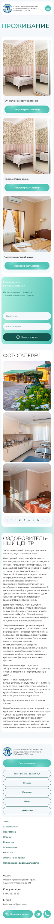 Решение: Мы разработали интуитивно понятный и визуально привлекательный веб-сайт, который позволяет пользователям быстро и легко находить информацию о лечебных программах, расписании, условиях проживания и уникальных преимуществах клиники. Особое внимание было уделено удобству навигации и адаптивному дизайну, чтобы сайт отлично функционировал на любых устройствах, включая мобильные телефоны и планшеты.